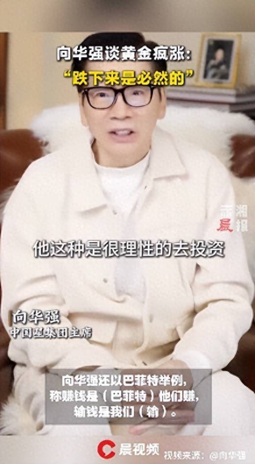 他在视频中谈到,(黄金白银)跌下来是势必的,“这个东西我早就不碰了。”向华强说,我方在二十世纪八十年代就炒过黄金白银,效果“莫得收尾(盈利),亏了”。向华强还以巴菲特例如:“收货是(巴菲特)他们赚,输钱是咱们(输)进去。”